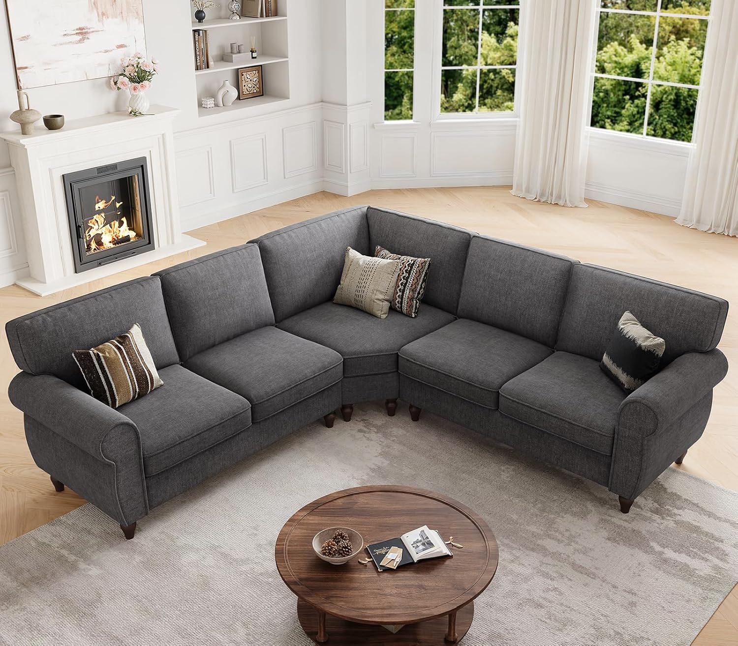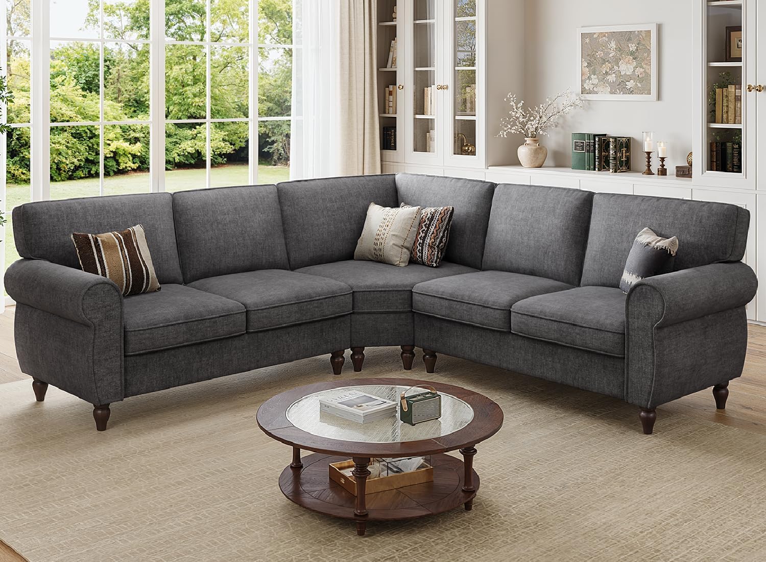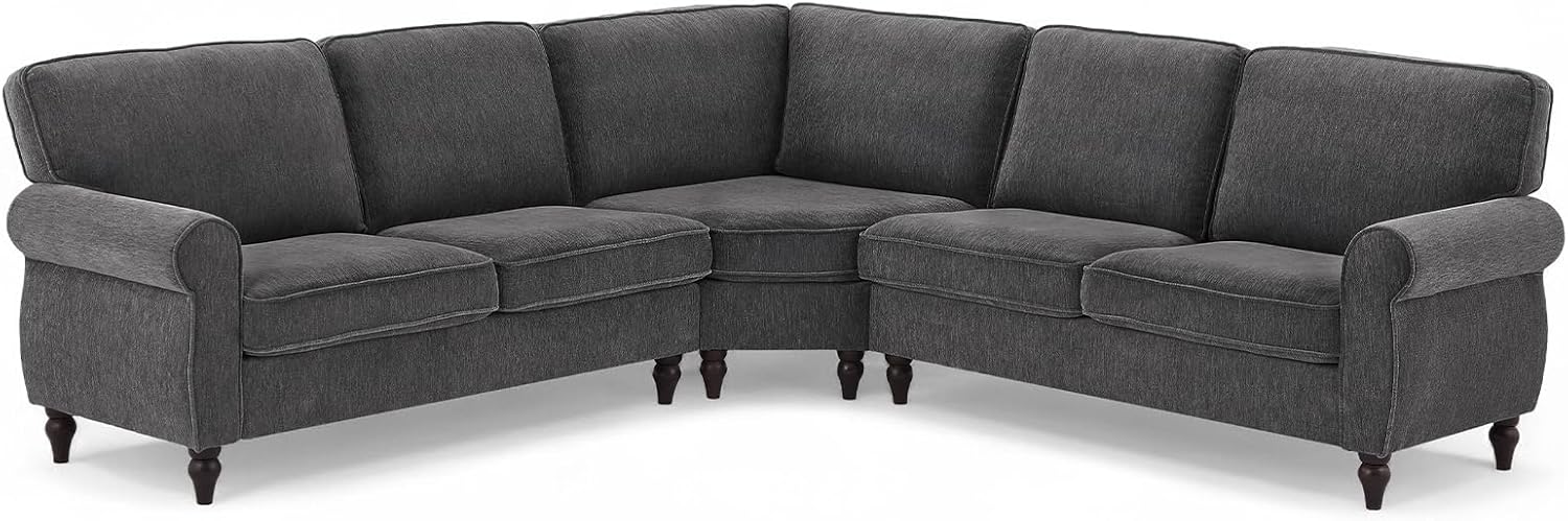 • Stylish Design: This L shaped couch features elegant rolled arms and turned wood legs that complement any home decor. The premium soft and durable chenille fabric offers a plush feel that enhances comfort and style