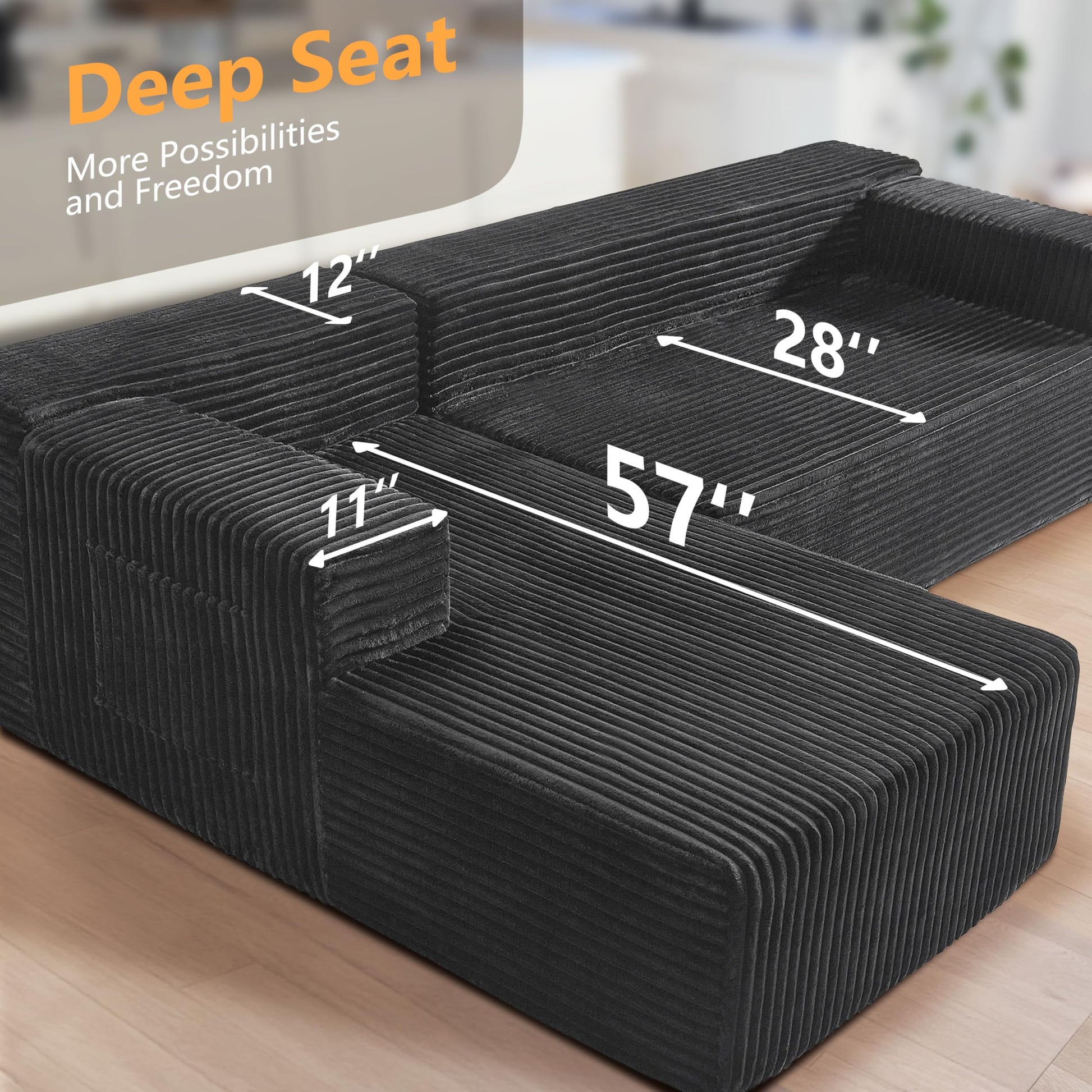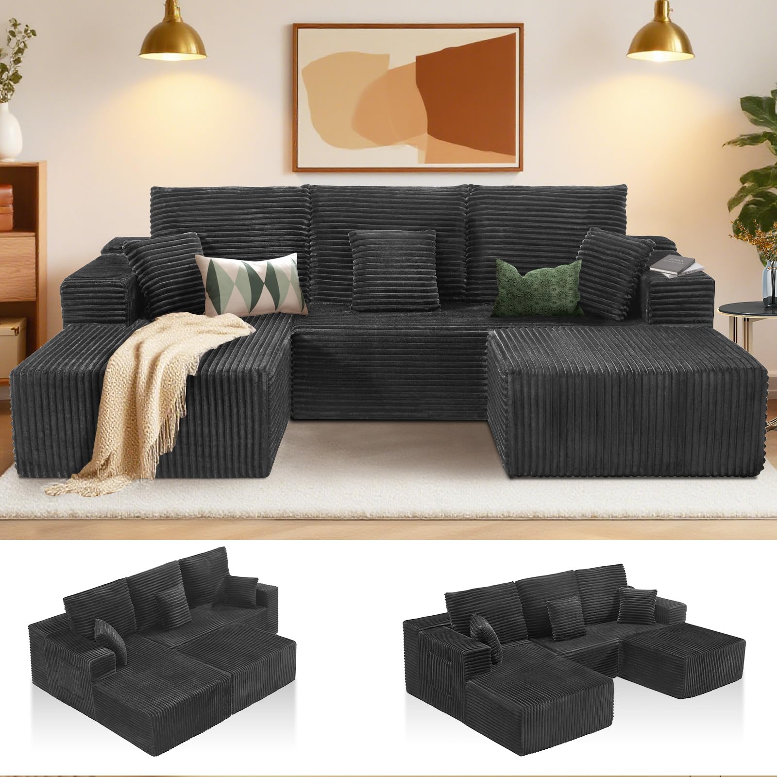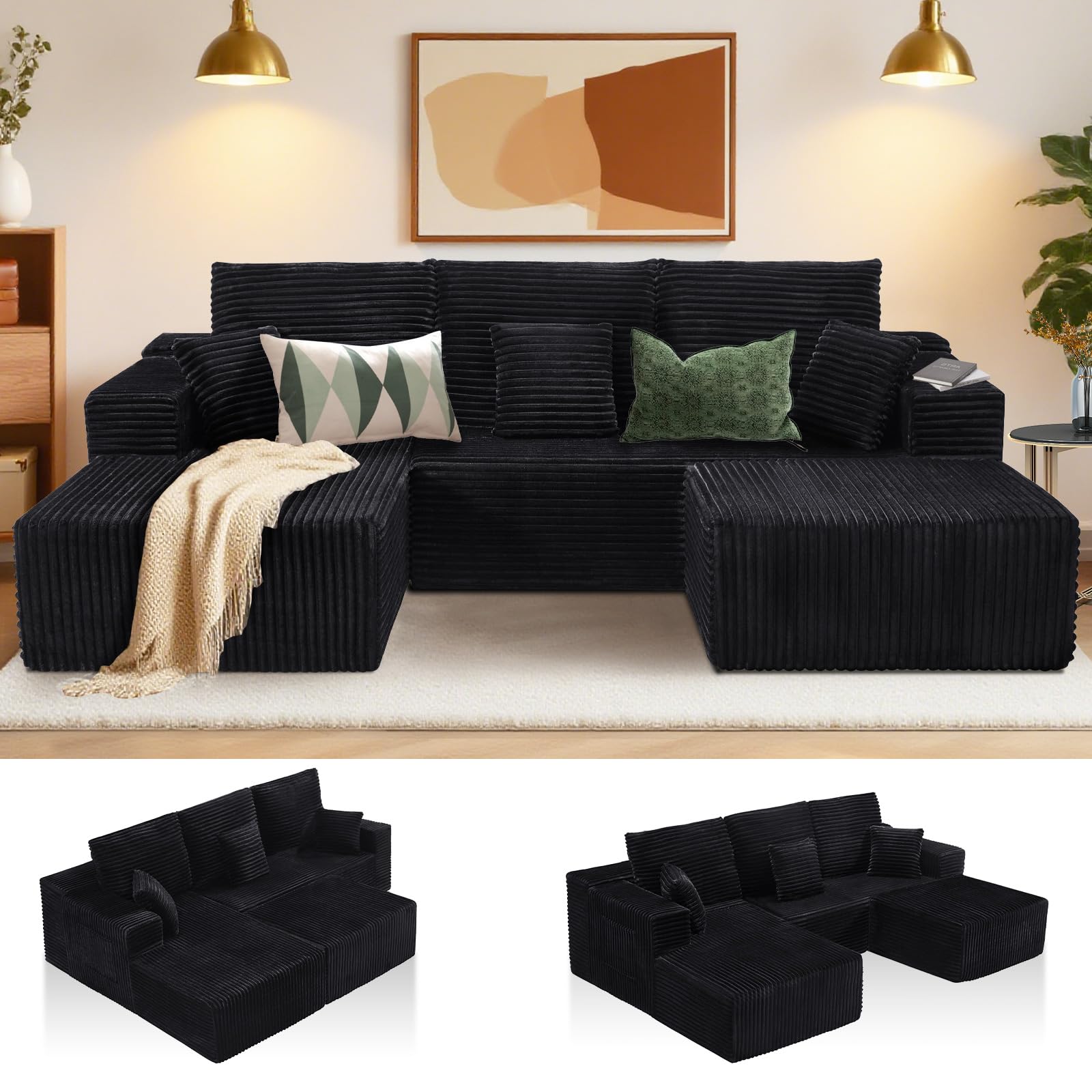 106’’ Modular L-Shape Sectional Couch, Couches for Living Room with Deep Seat, Modern Minimalist Upholstered Couches with Chaise, No Assembly Required, Corduroy Fabric Sofa.