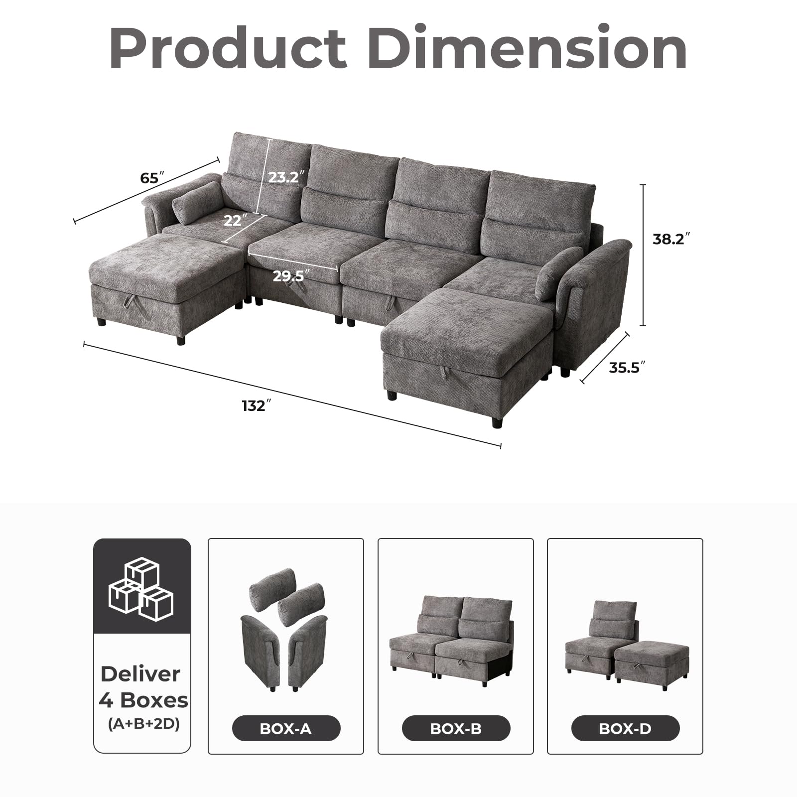 Product Dimensions | 65"D x 132"W x 38.2"H |