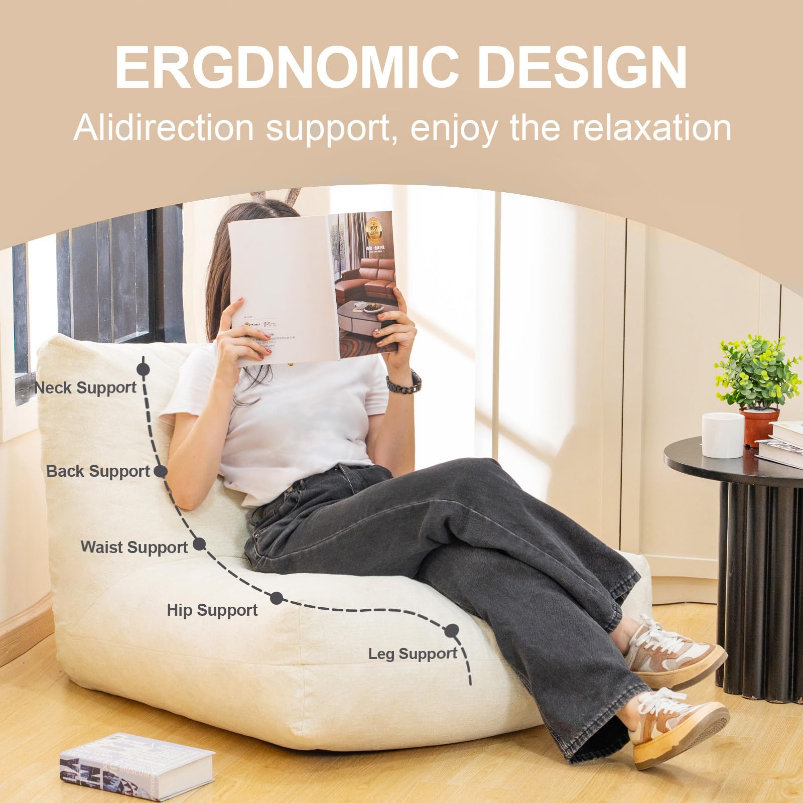 • 【ERGDNOMIC DESIGN】This bean bag chairs has been designed in order to provide adequate support to the user, better fitting the curves of the shoulders, back, waist, hips and legs of the human body. Wrap your body in all directions for a relaxing leisure time.