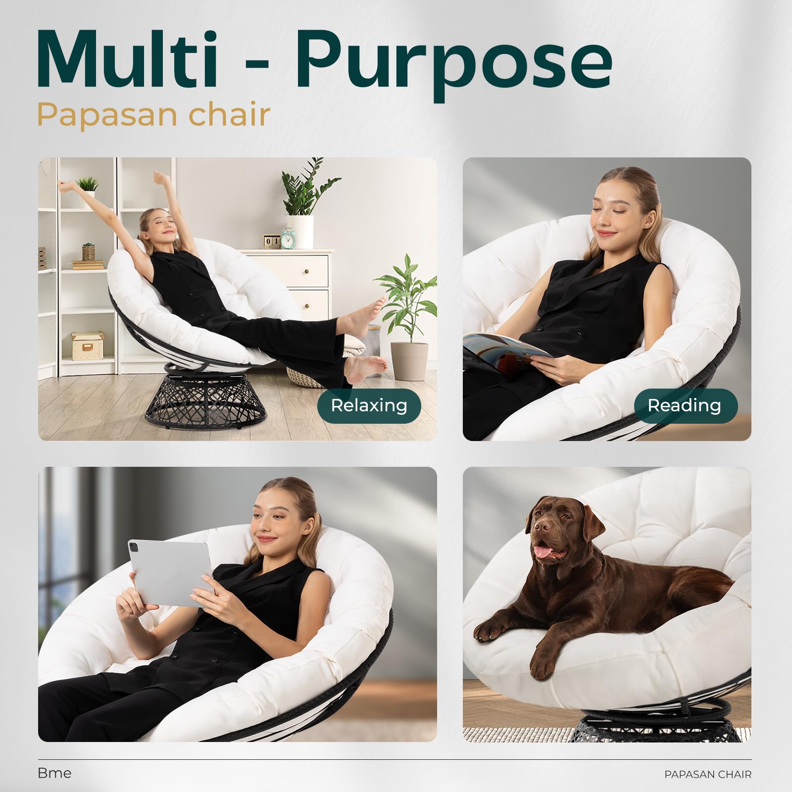 The Bme 40" Ergonomic Wicker Indoor and Outdoor Papasan Chair is a great blend of functionality, comfort and stylish design, making it an ideal addition to your living room, bedroom or reading nook.