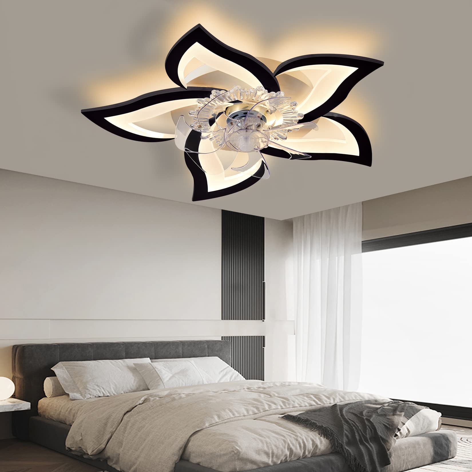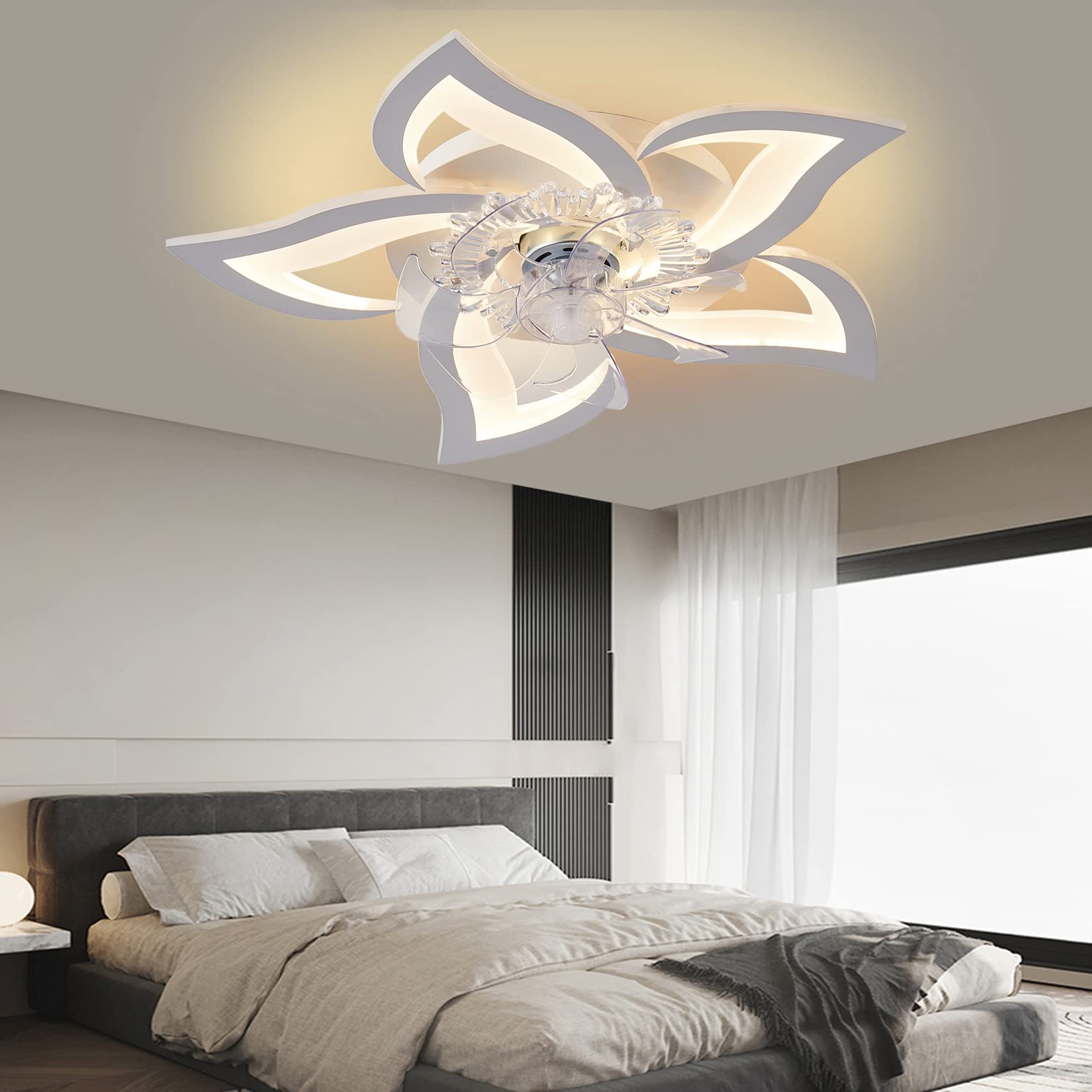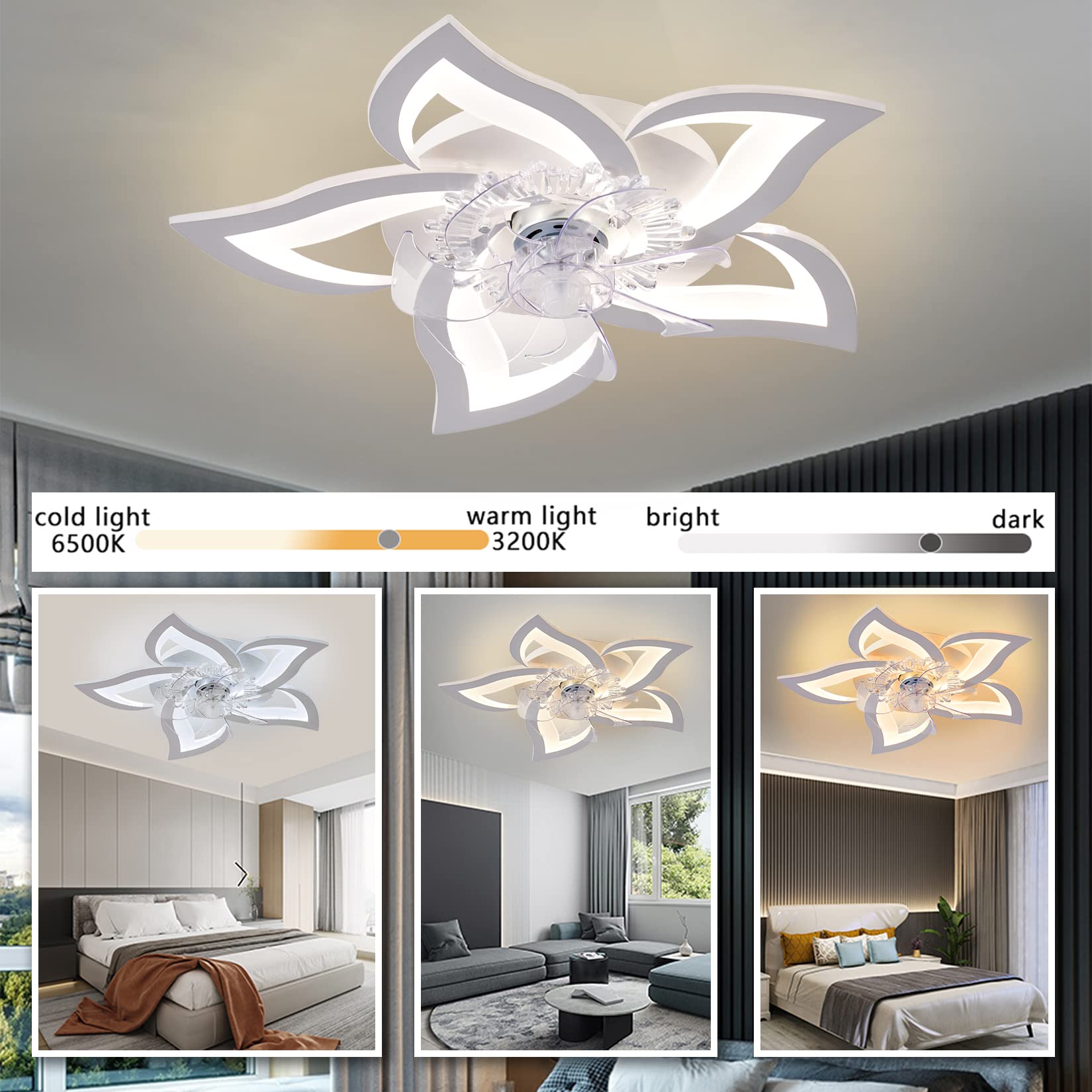 • [Creative design] A flower ceiling fan with light, you can get two functions of lighting and cool.Ceiling fan with lights can come in handy no matter the season, as lighting and cooling can be used simultaneously or separately.
