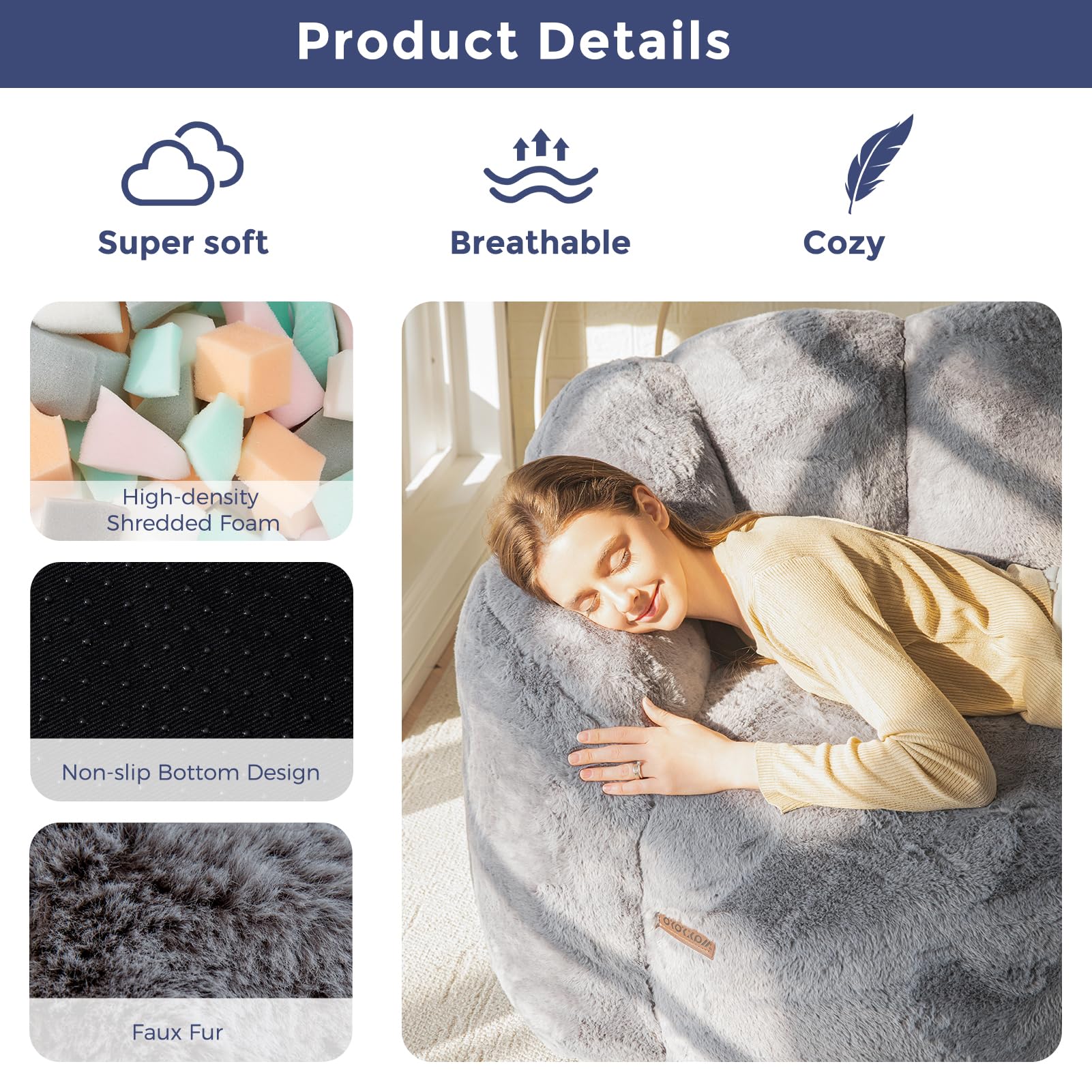 MAXYOYO Floral Bean Bag Chair – Beige