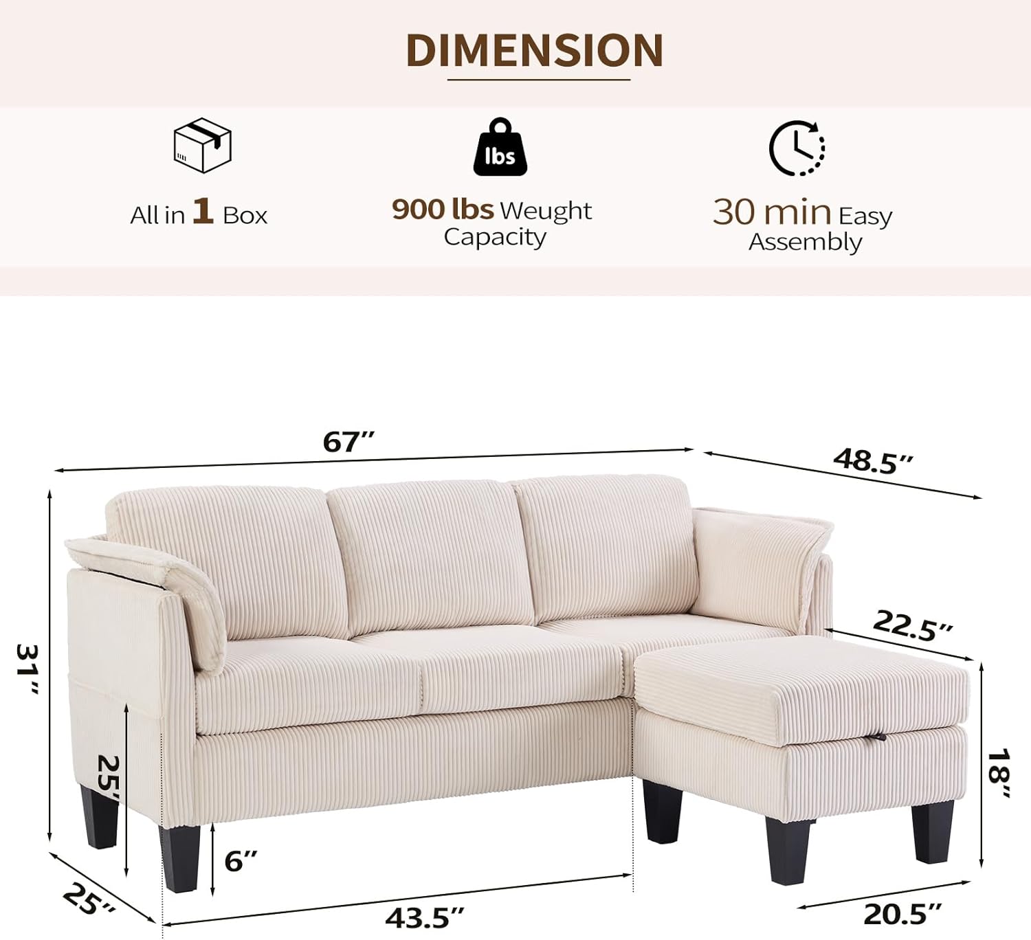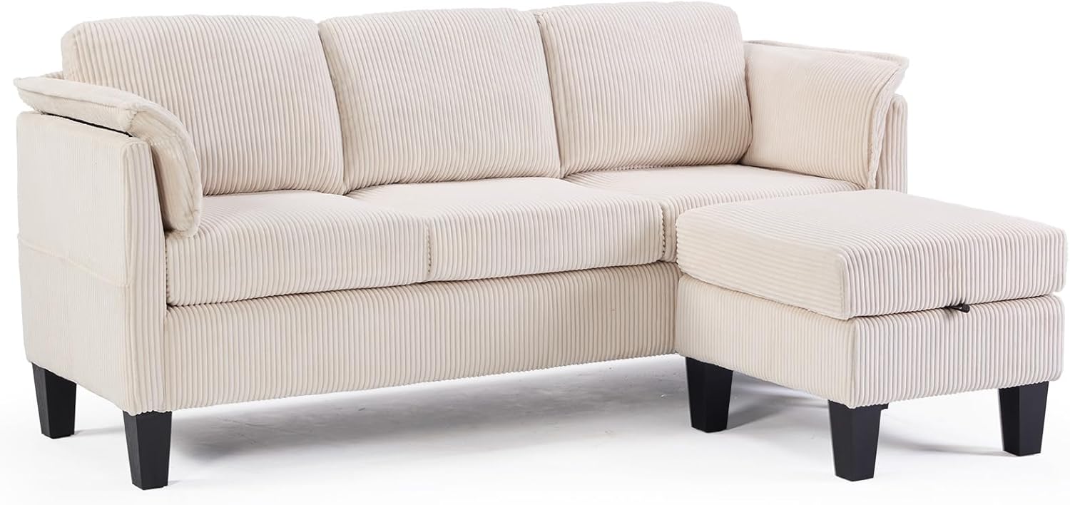 • Soft & Stylish Corduroy Upholstery – Crafted with soft corduroy fabric, this upholstered sectional couch adds a touch of texture and warmth while ensuring a cozy lounging experience for everyday use.