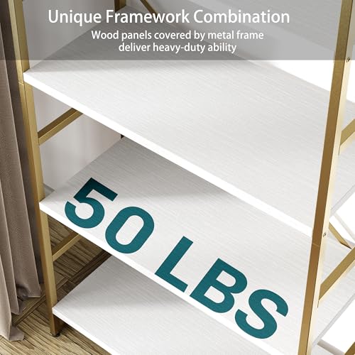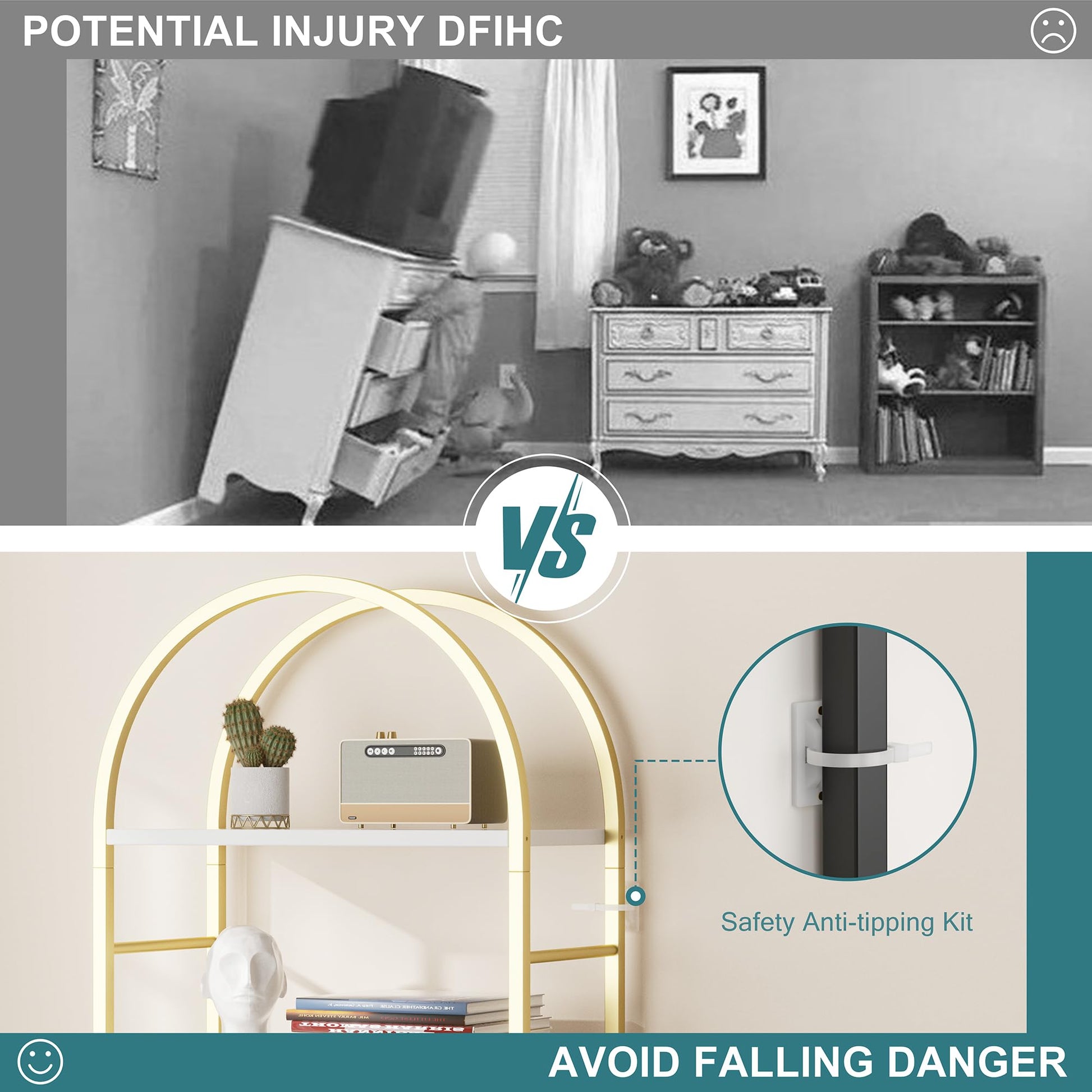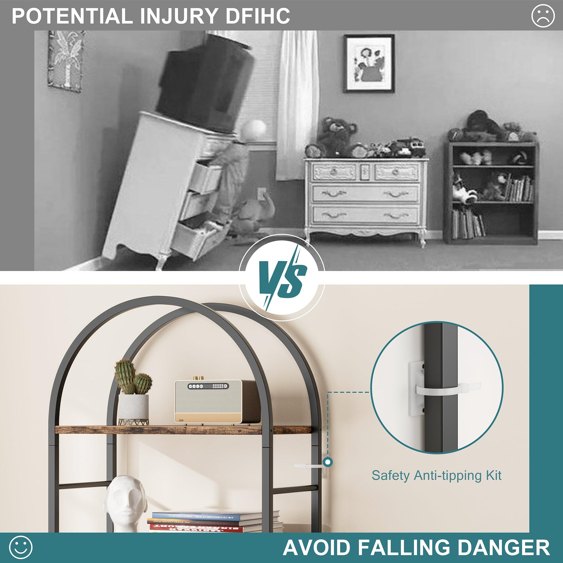 STABLE AND DURABLE: Crafted from steel frame and particle board, this wide bookshelf has high stability and long service life, each shelf can hold up to 50 lbs.The bookshelves come with anti-tilt brackets so you can fasten them to the wall for support.