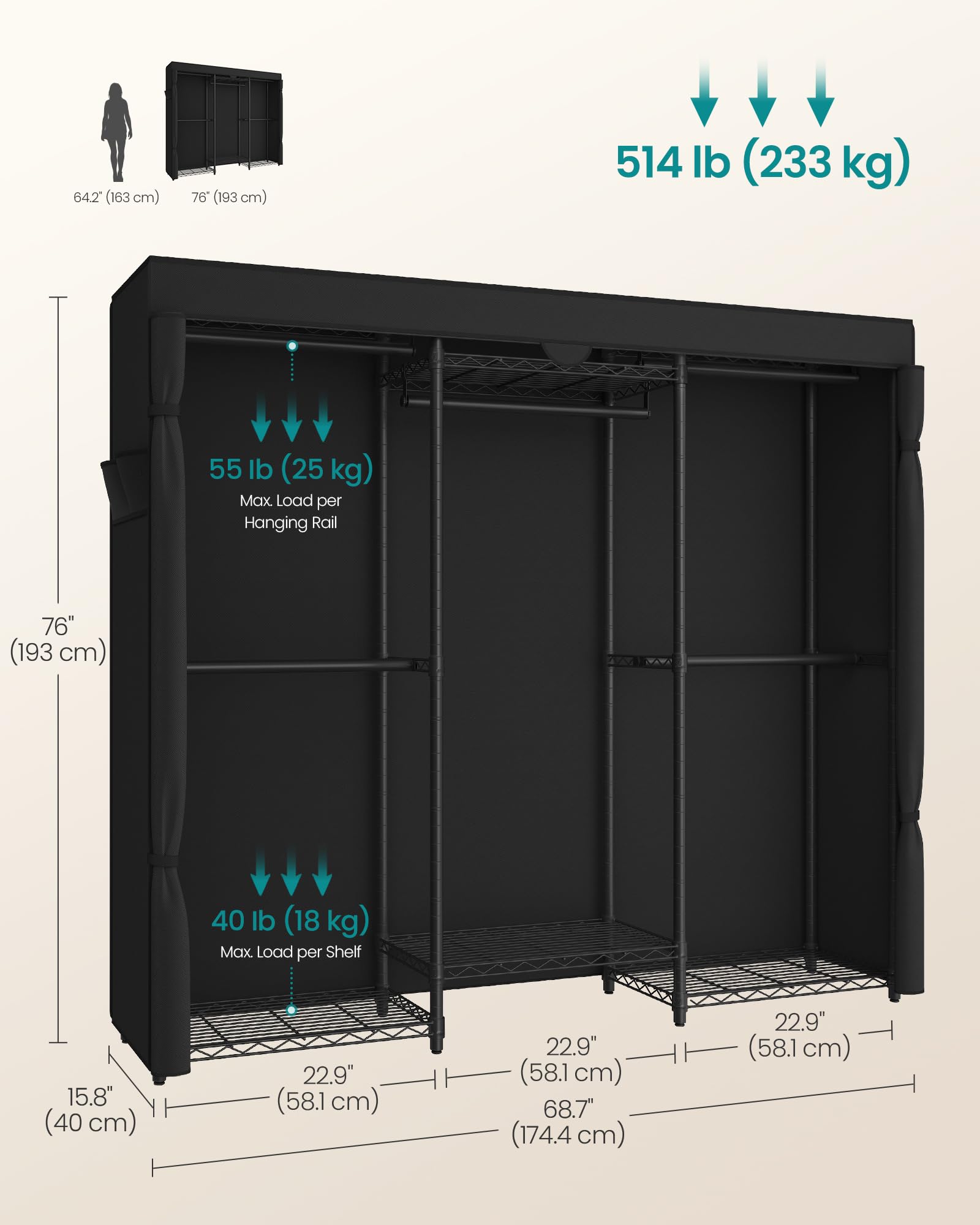 Item dimensions L x W x H | 68.7 x 15.8 x 76 inches |